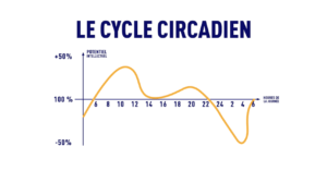 Le cycle circadien apparait sur l’illustration ci-dessous avec en abscisse les heures de la journée et en ordonnée notre potentiel intellectuel.
